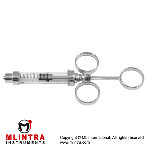 3 Ring Hypodermic Syringe Glass Barrel - With Luer Lock Connection - Moveable Rings Stainless Steel, Capacity 2 ml