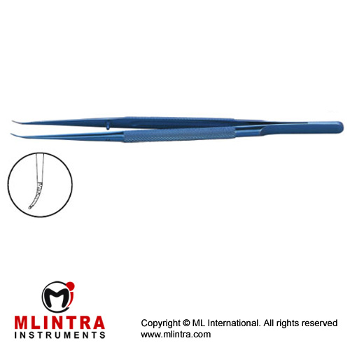 Product:Micro Tying Forceps Tungsten carbide coated platforms,curved,Round handle,18cm